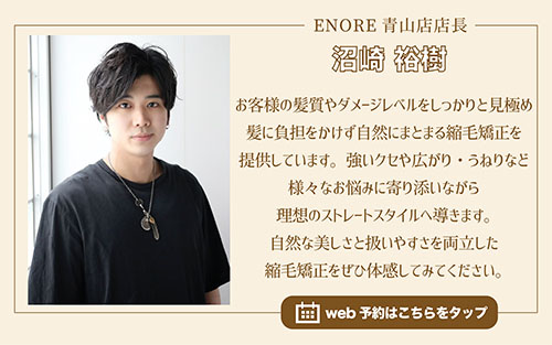 つまりただ縮毛矯正をすればOKという訳ではなく、、「ダメージレス」に。「繊細」に。縮毛矯正をかけてあげる必要があるんです。そこでおすすめなのが髪と同じ性質を持つ『弱酸性』の縮毛矯正。エノアは弱酸性の薬剤で髪を労わりながら施術するのが得意な美容院なんです。