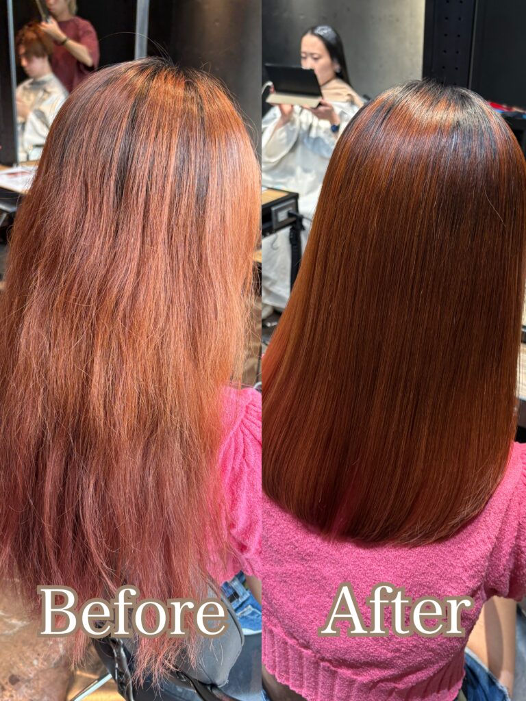 何度も重ねたパーマのダメージ、明るめカラーのダメージが混在していましたが、