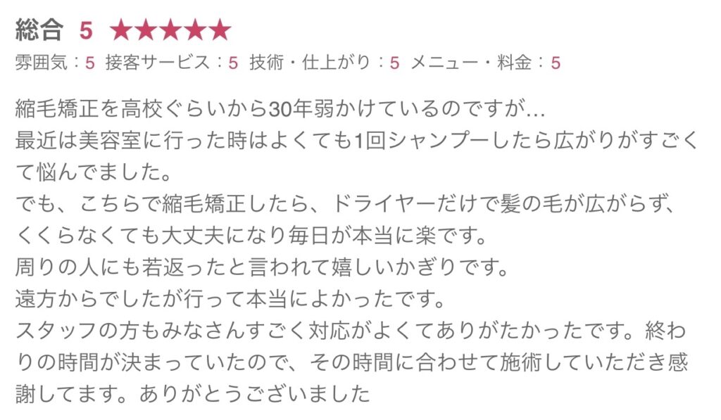 半年ぶりの縮毛矯正で、
