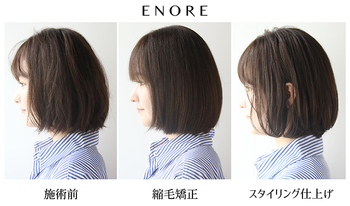 ENOREオリジナルの薬剤を使っているので仕上がりが自然でナチュラルな仕上がりになるのでとても扱いやすくなります。朝のスタイリングもとても楽になります。