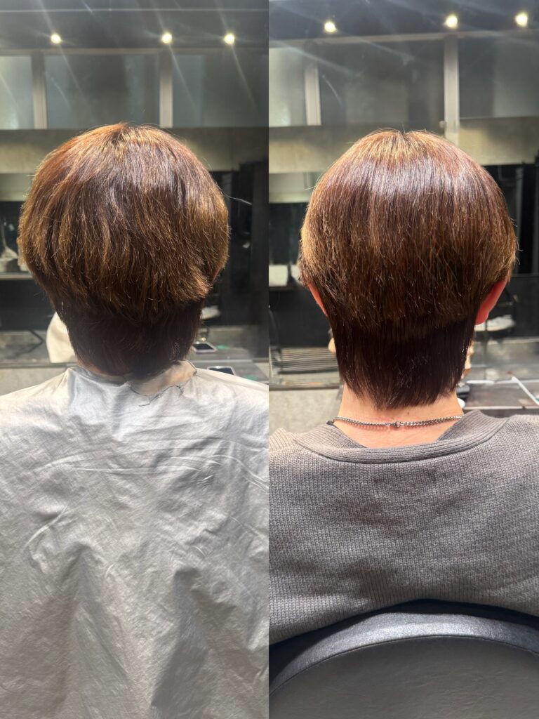 仕上がりはカットしていないにもかかわらず、おさまりがとても良くなって頭がとても小さくなりました!